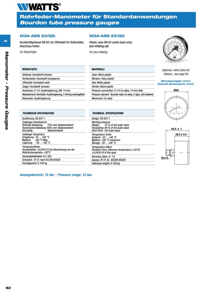 Anzeigebereich: 12 bar - Pressure range: 12 bar