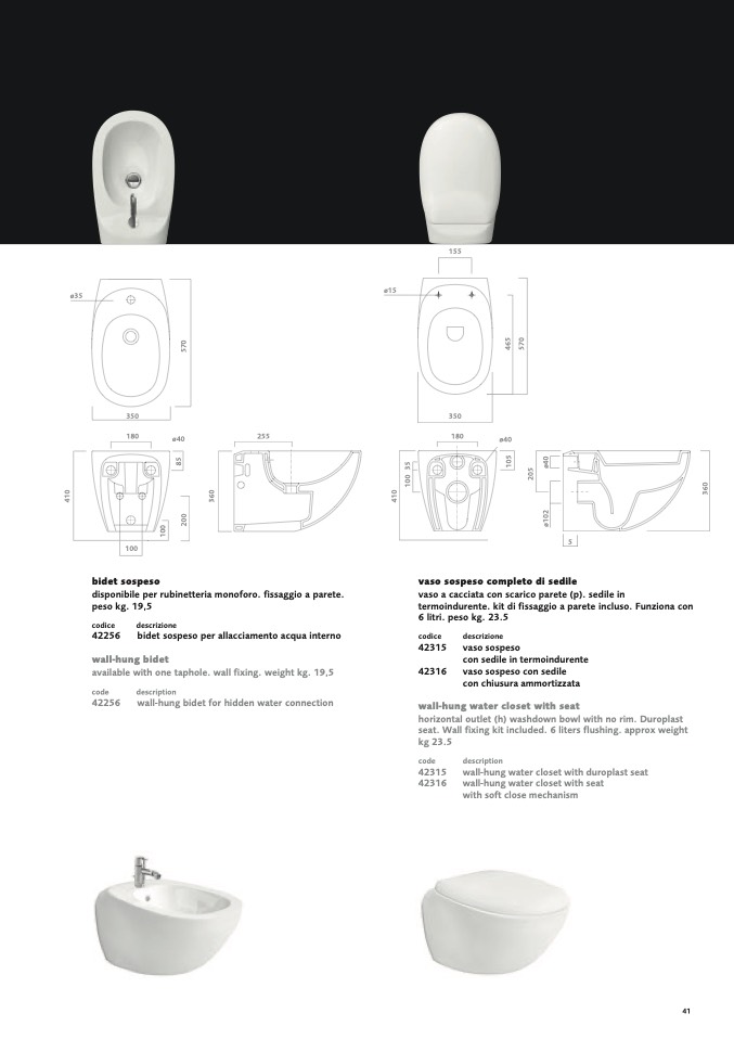 seat. Wall fixing kit included. 6 liters flushing. approx weight