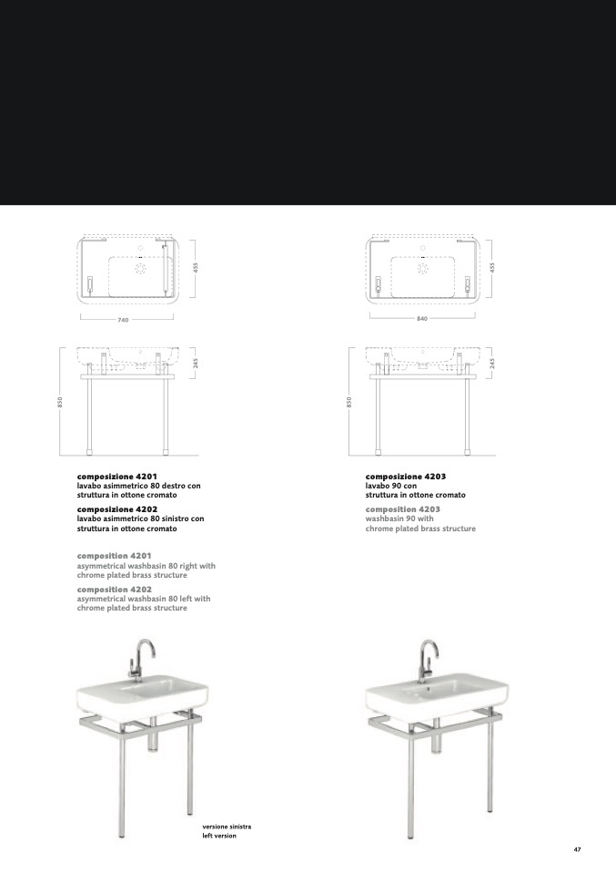 lavabo asimmetrico 80 sinistro con