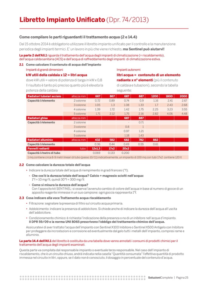 2.1 Come calcolare il contenuto di acqua dell’impianto