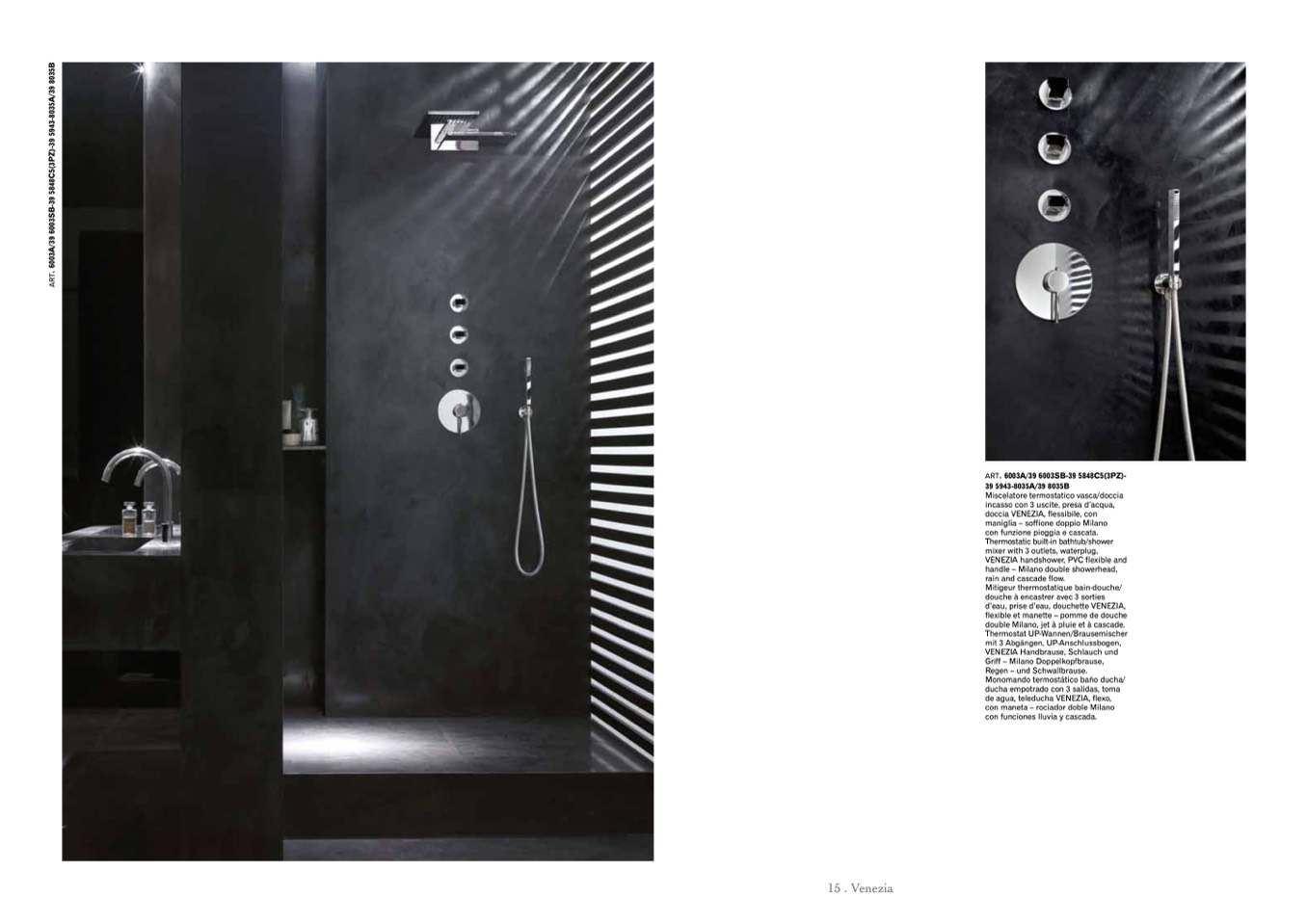 double Milano, jet à pluie et à cascade.
