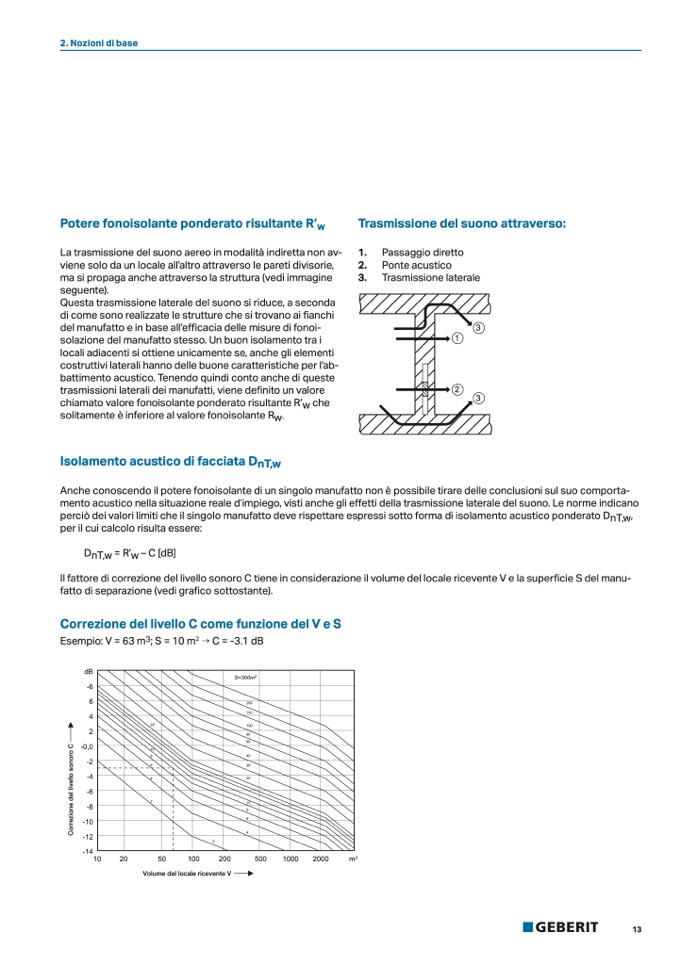 Il fattore di correzione del livello sonoro C tiene in considerazione il volume del locale ricevente V e la superficie S del manu-
