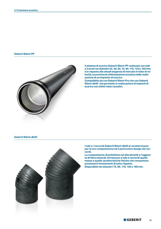I tubi e i raccordi Geberit Silent-db20 si caratterizzano