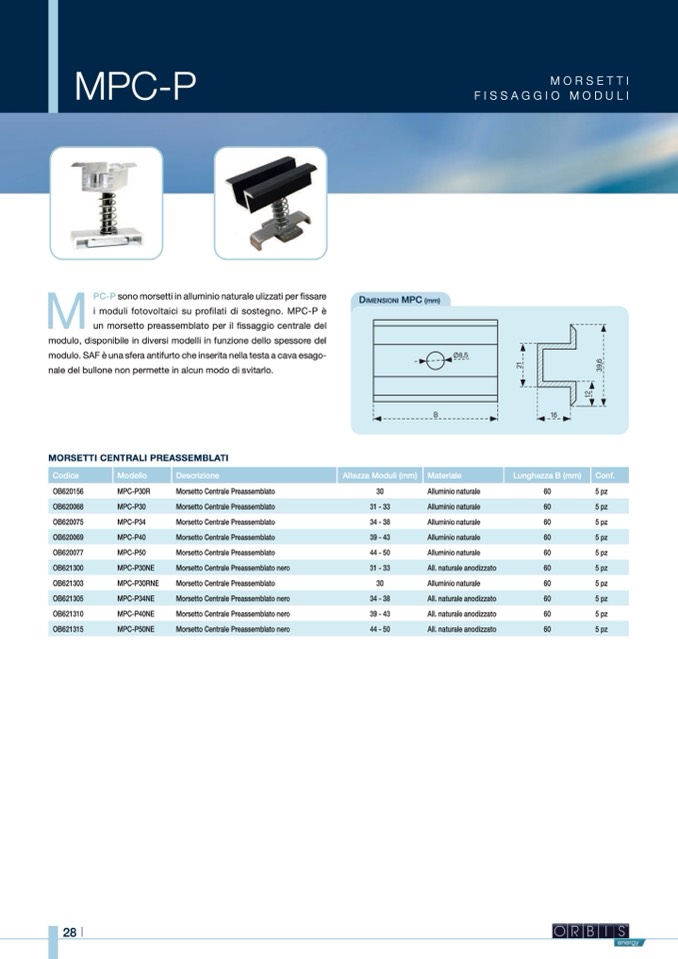 i moduli fotovoltaici su profilati di sostegno. MPC-P