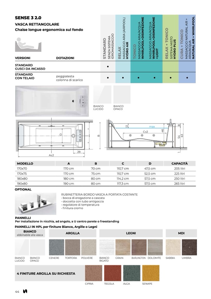 Per installazione in nicchia, ad angolo, a U centro parete o freestanding