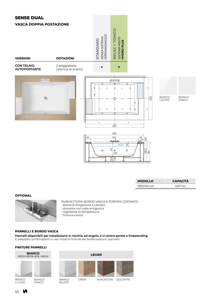 È possibile combinazioni in vari modi le finiture del bordo vasca e i pannelli
