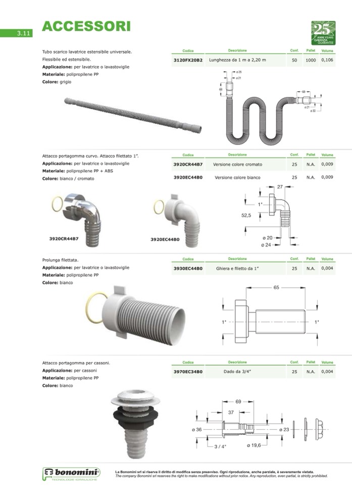 La Bonomini srl si riserva il diritto di modifica senza preavviso. Ogni riproduzione, anche parziale, è severamente vietata.