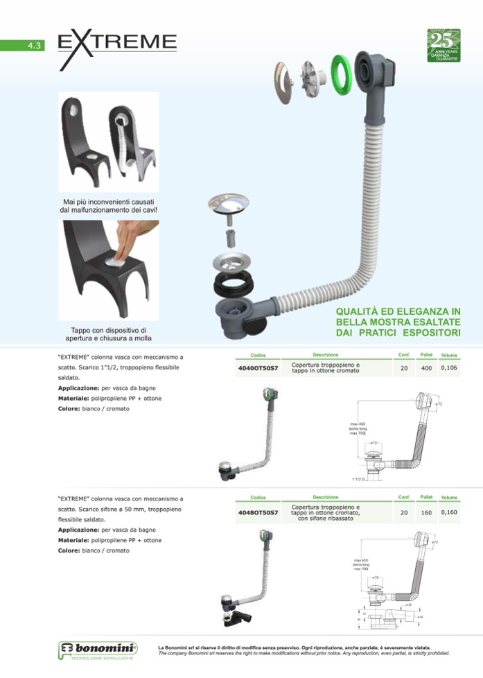 La Bonomini srl si riserva il diritto di modifica senza preavviso. Ogni riproduzione, anche parziale, è severamente vietata.