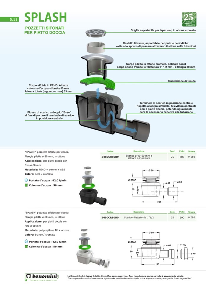 “SPLASH” pozzetto sifoide per doccia