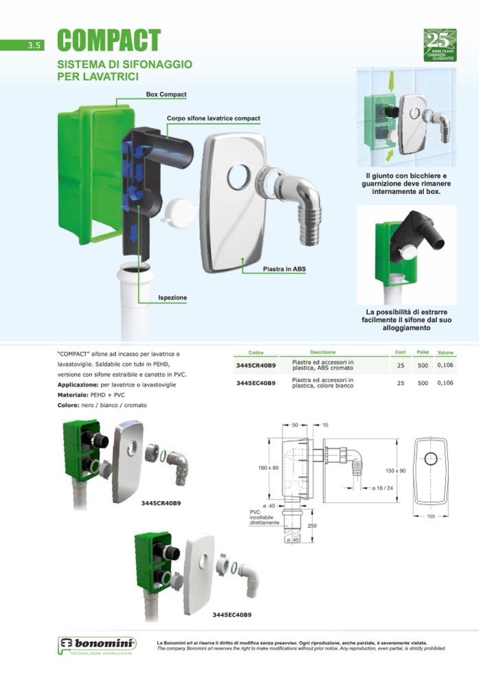 “COMPACT” sifone ad incasso per lavatrice o