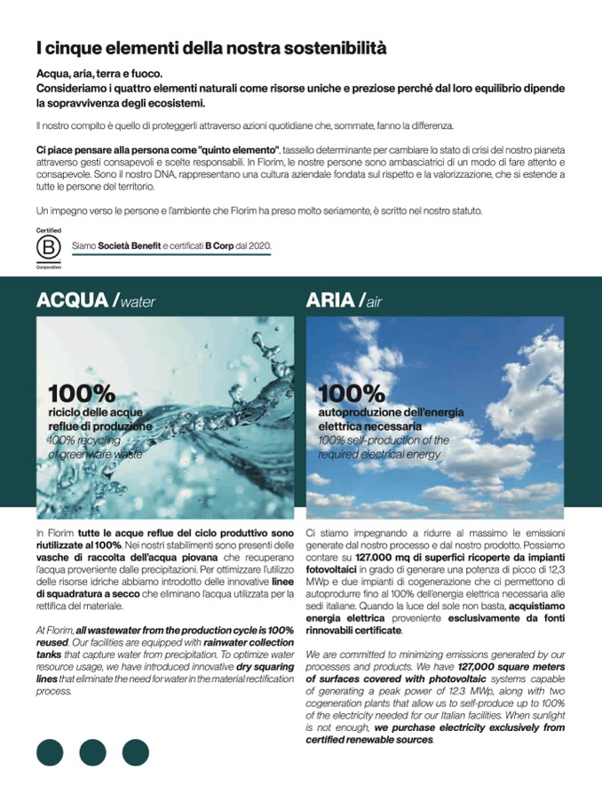 Un impegno verso le persone e l’ambiente che Florim ha preso molto seriamente, è scritto nel nostro statuto.