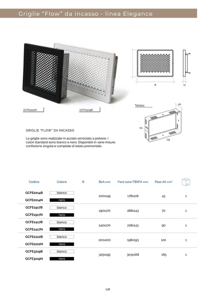 Le griglie sono realizzate in acciaio verniciato a polvere. I
