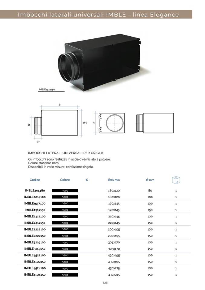 Gli imbocchi sono realizzati in acciaio verniciato a polvere.