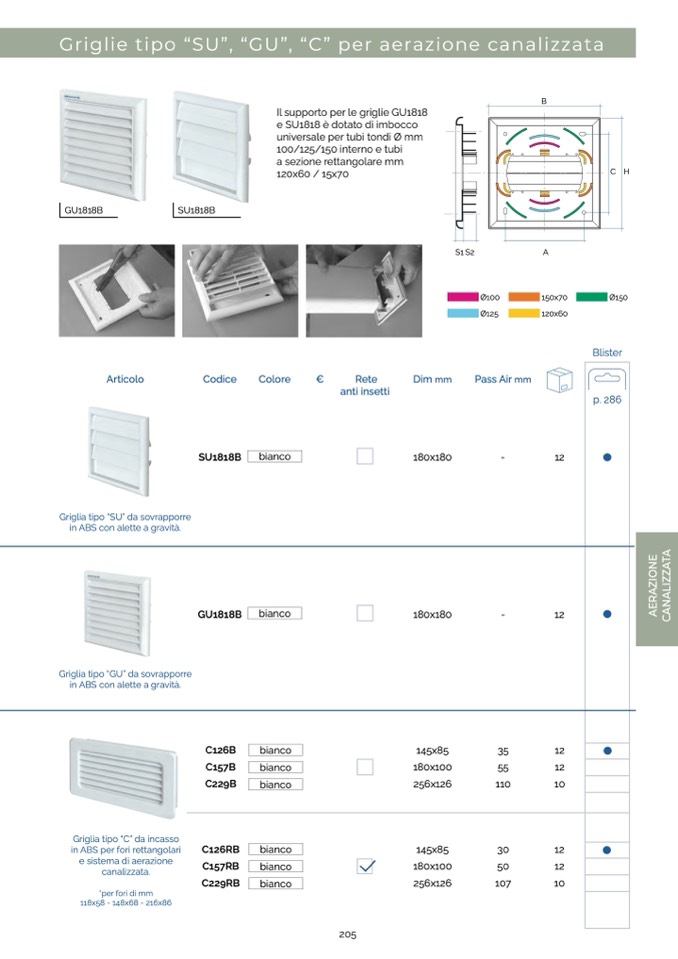 Griglia tipo “C” da incasso