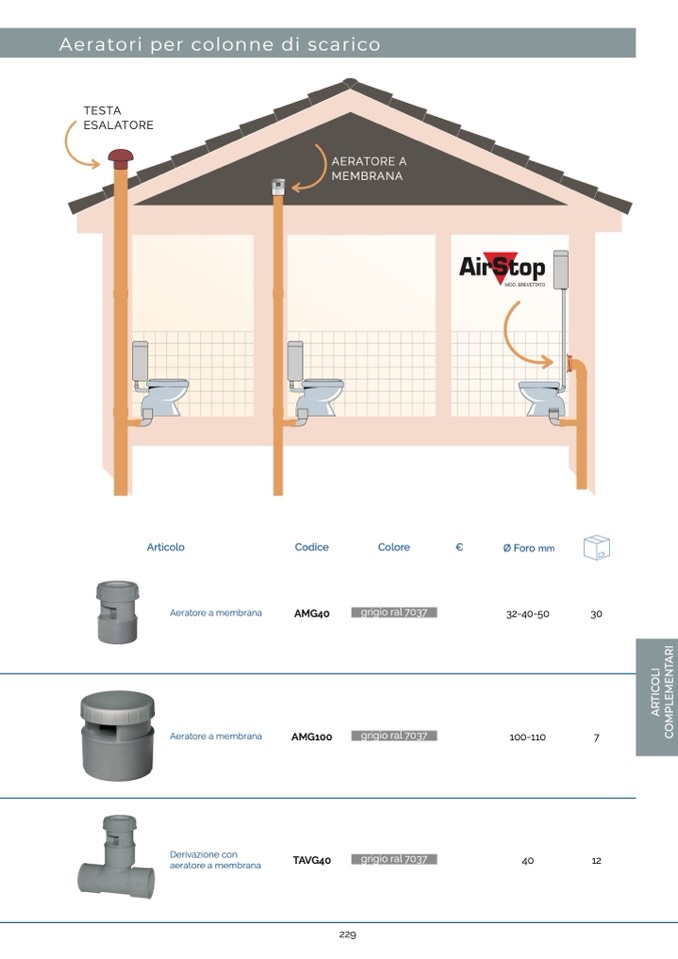 Aeratori per colonne di scarico