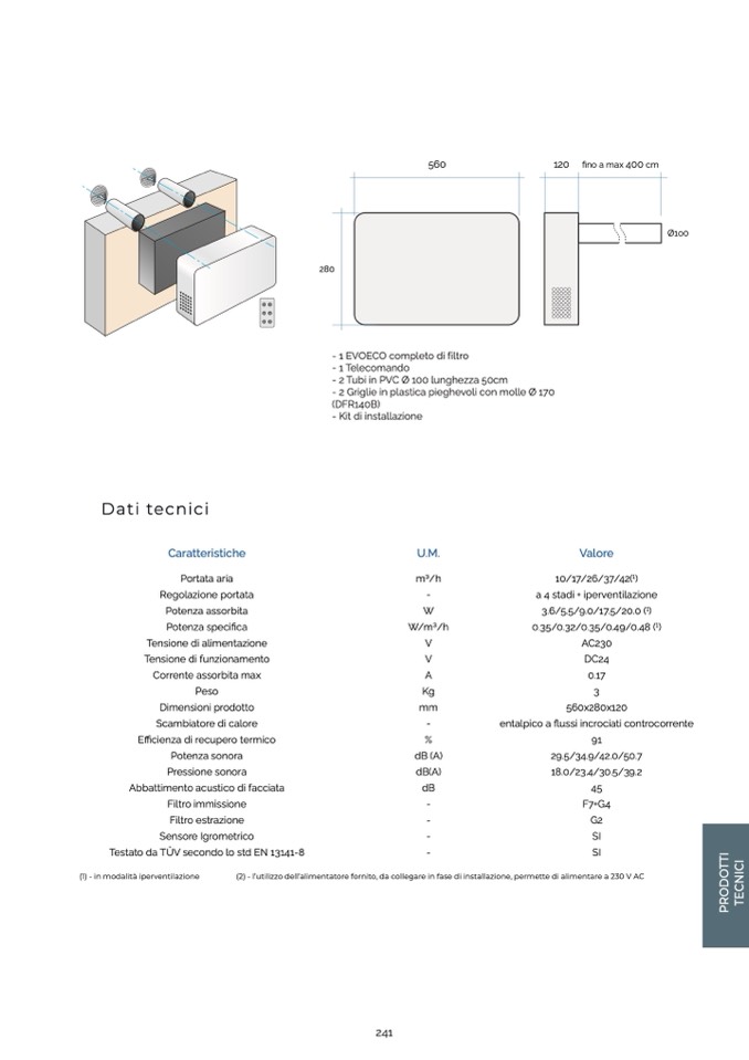 (2) - l’utilizzo dell’alimentatore fornito, da collegare in fase di installazione, permette di alimentare a 230 V AC