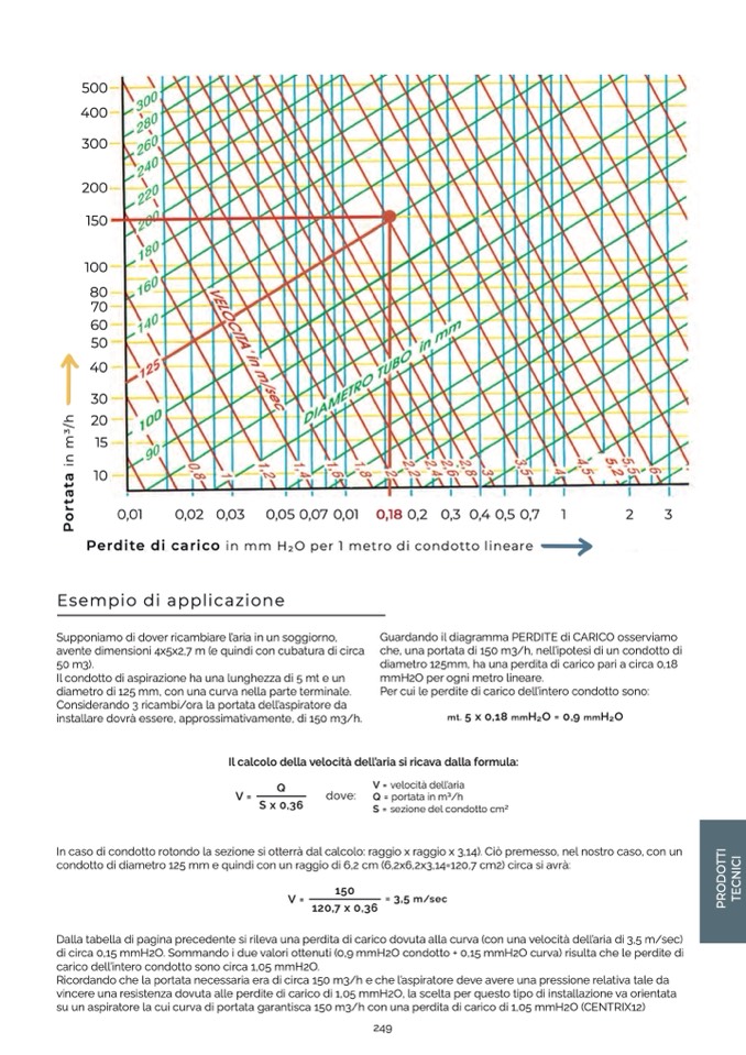 Ricordando che la portata necessaria era di circa 150 m3/h e che l’aspiratore deve avere una pressione relativa tale da