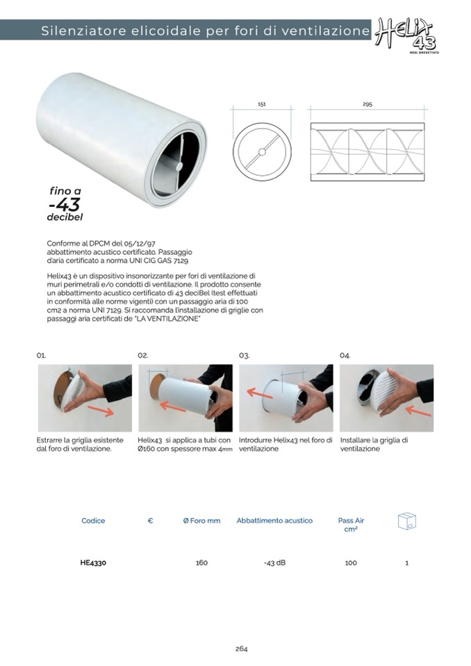 Helix43 è un dispositivo insonorizzante per fori di ventilazione di