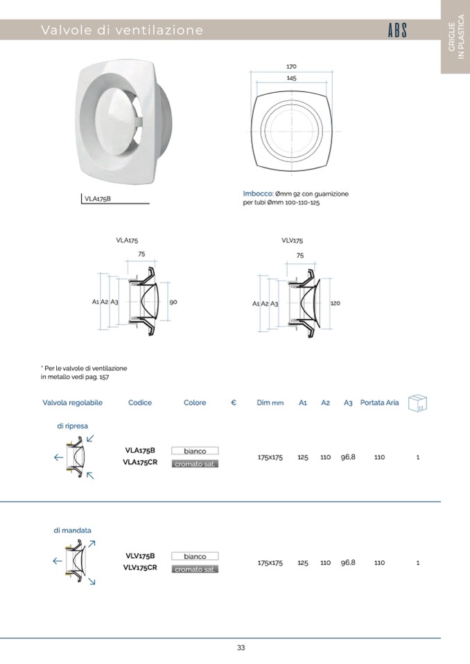 * Per le valvole di ventilazione