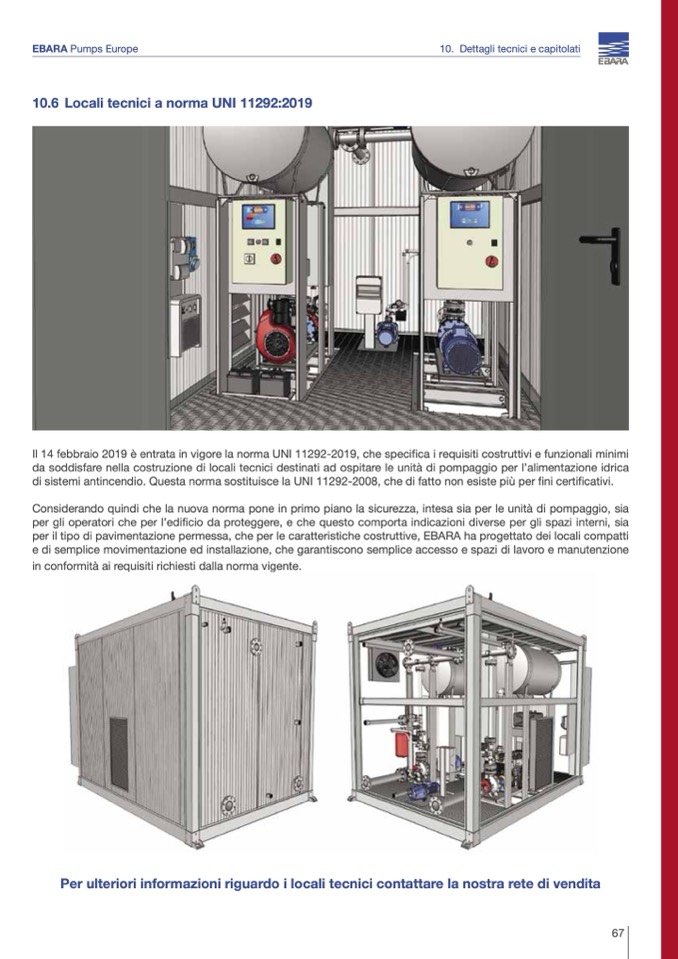 per il tipo di pavimentazione permessa, che per le caratteristiche costruttive, EBARA ha progettato dei locali compatti
