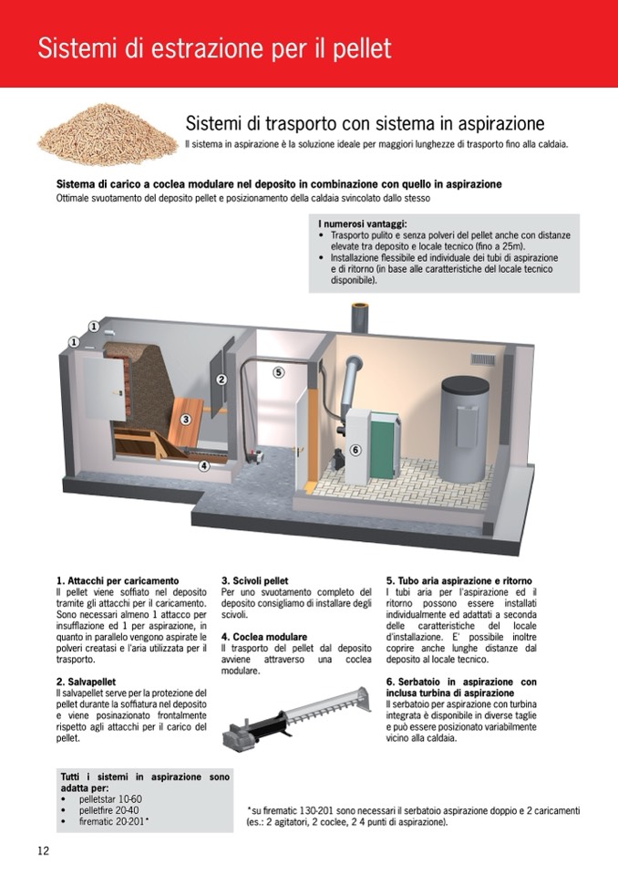 • Trasporto pulito e senza polveri del pellet anche con distanze