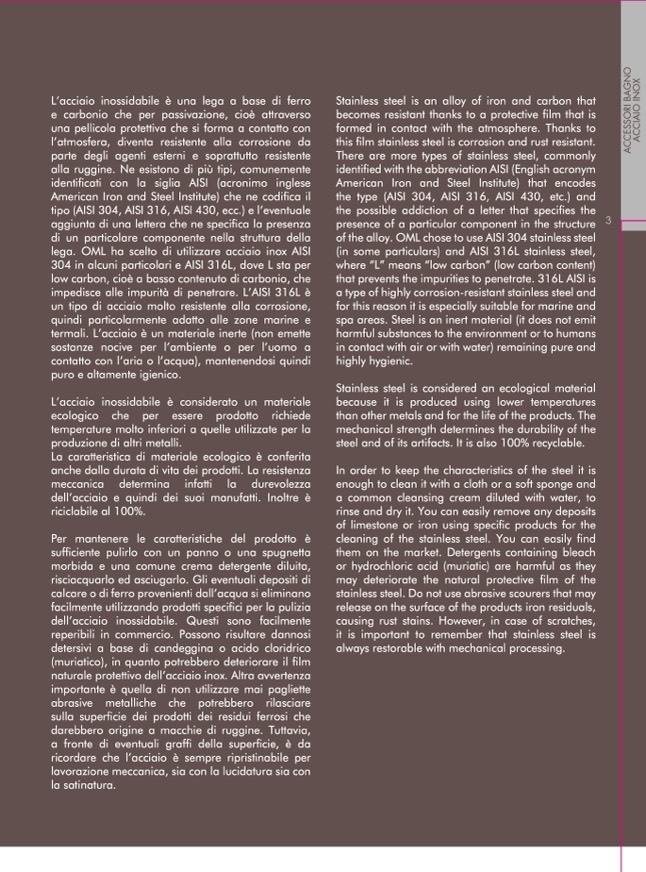 lega. OML ha scelto di utilizzare acciaio inox AISI