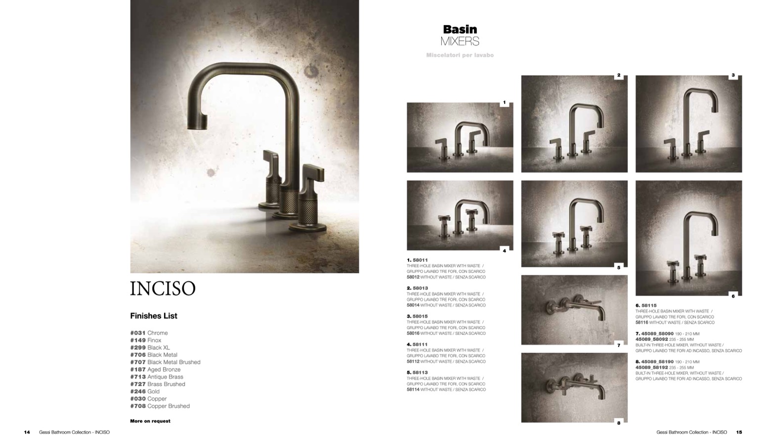 GRUPPO LAVABO TRE FORI AD INCASSO, SENZA SCARICO