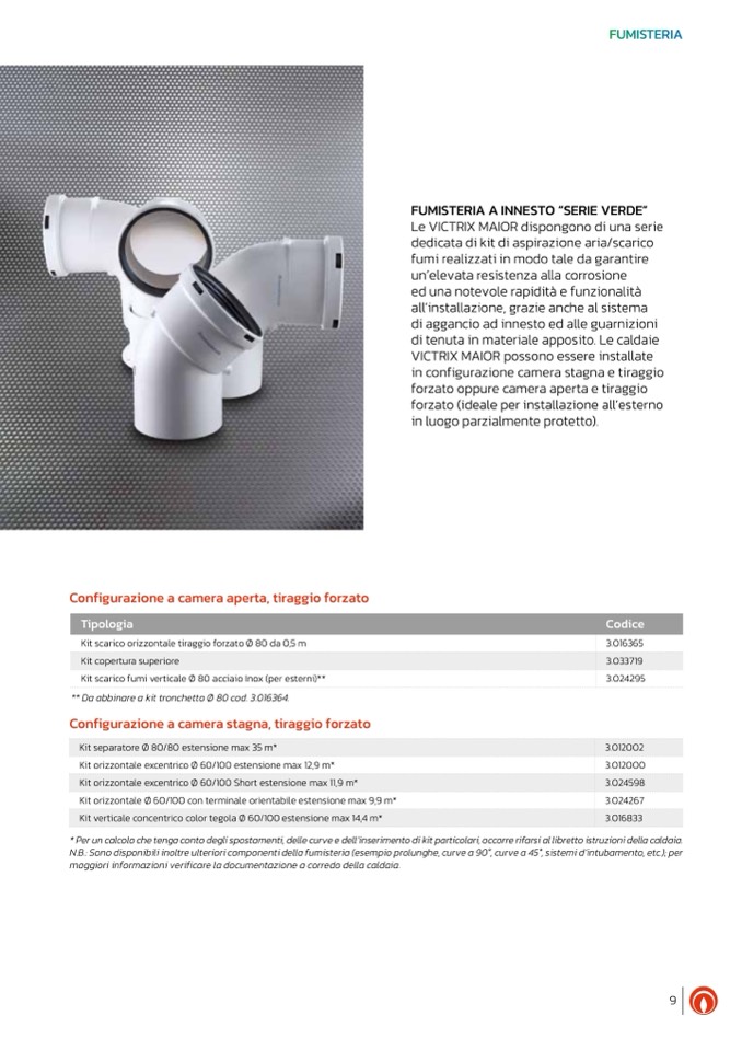 N.B.: Sono disponibili inoltre ulteriori componenti della fumisteria (esempio prolunghe, curve a 90°, curve a 45°, sistemi d’intubamento, etc.); per