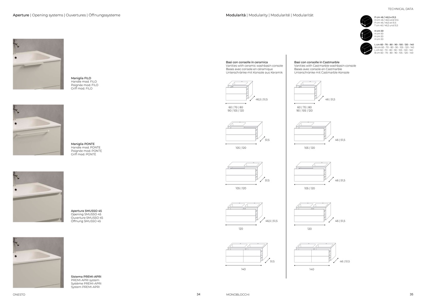 L cm 60 - 70 - 80 - 90 - 105 - 120 - 140