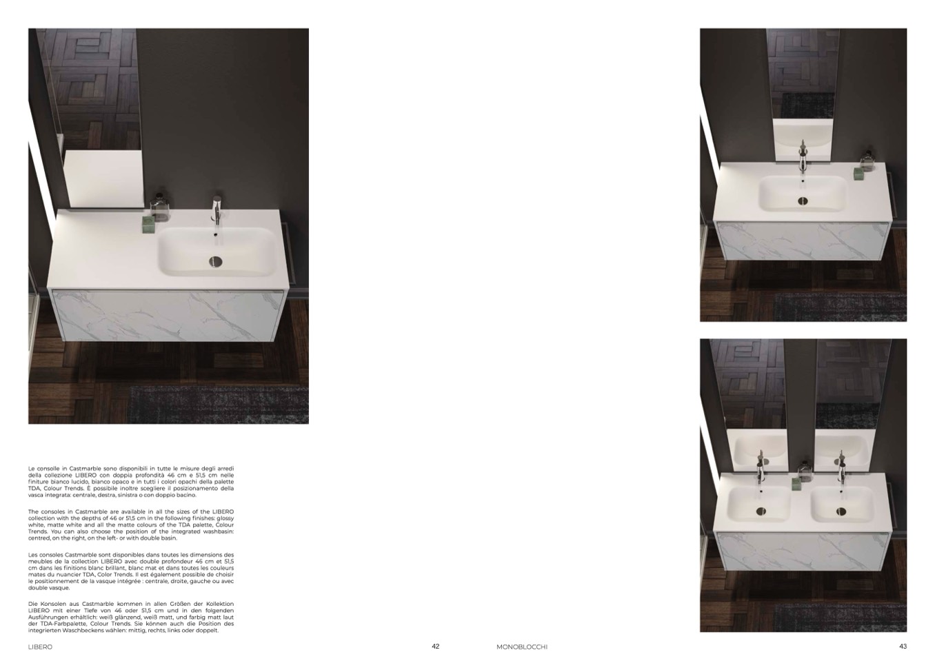 The consoles in Castmarble are available in all the sizes of the LIBERO