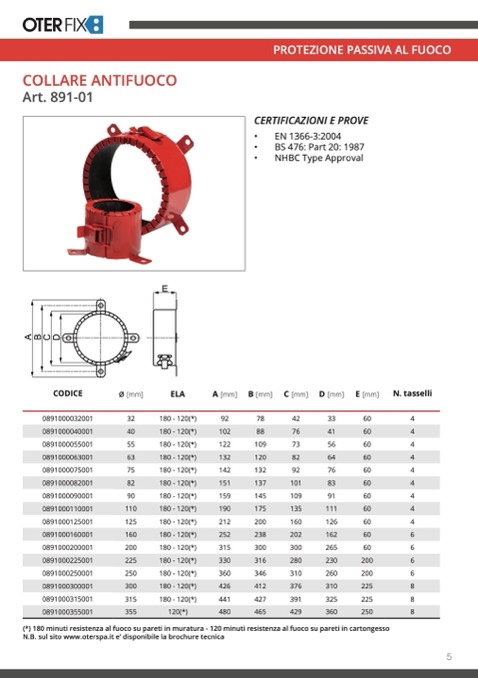 (*) 180 minuti resistenza al fuoco su pareti in muratura - 120 minuti resistenza al fuoco su pareti in cartongesso