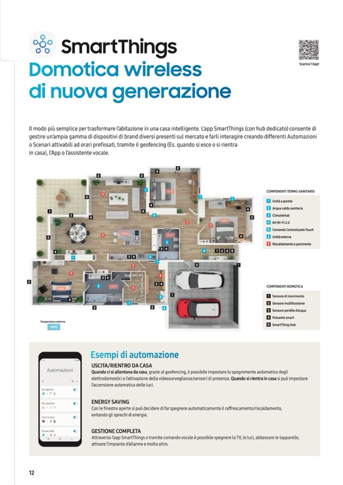 Attraverso l’app SmartThings o tramite comando vocale è possibile spegnere la TV, le luci, abbassare le tapparelle,