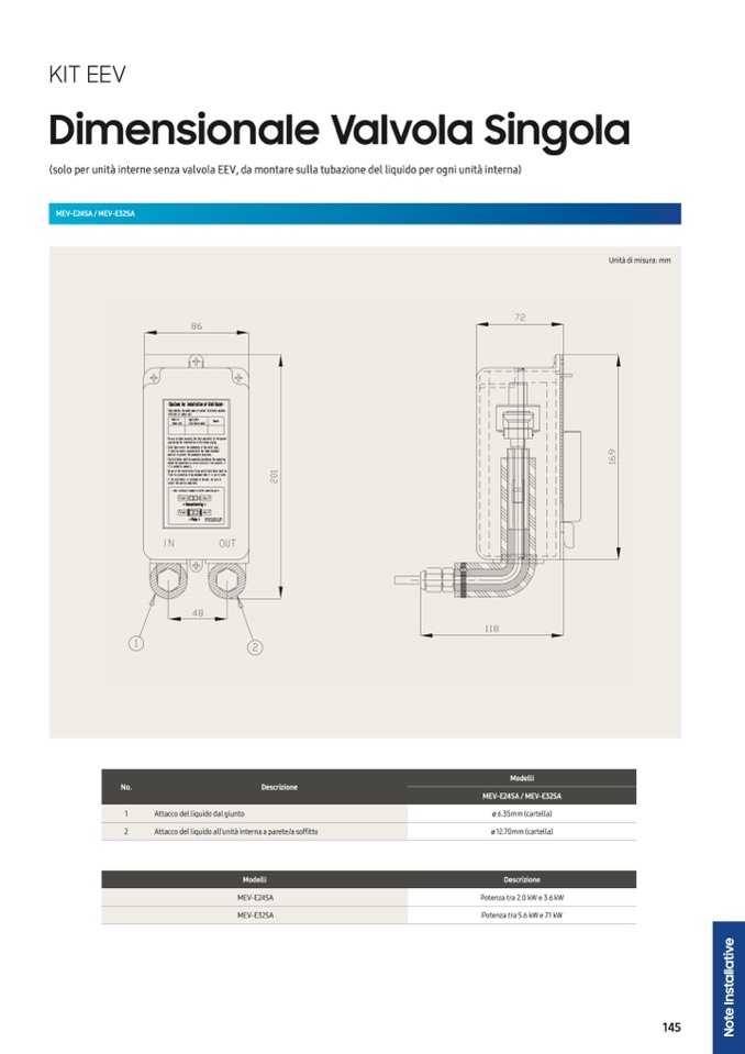 (solo per unità interne senza valvola EEV, da montare sulla tubazione del liquido per ogni unità interna)