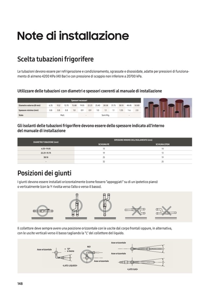 Utilizzare delle tubazioni con diametri e spessori coerenti al manuale di installazione