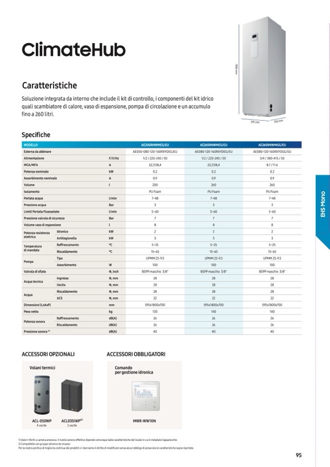 1) Valori riferiti a camera anecoica. Il livello sonoro effettivo dipende comunque dalle caratteristiche del locale in cui è installato l’apparecchio