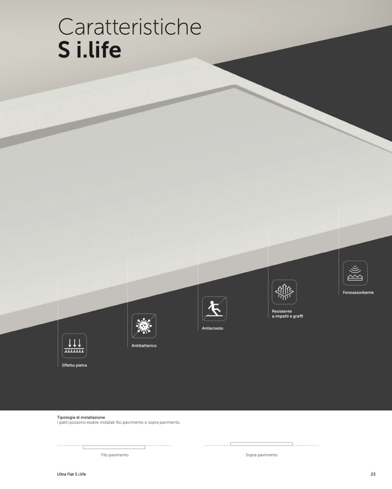 I piatti possono essere installati filo paviimento o sopra pavimento.