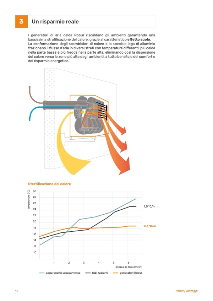 I generatori di aria calda Robur riscaldano gli ambienti garantendo una
