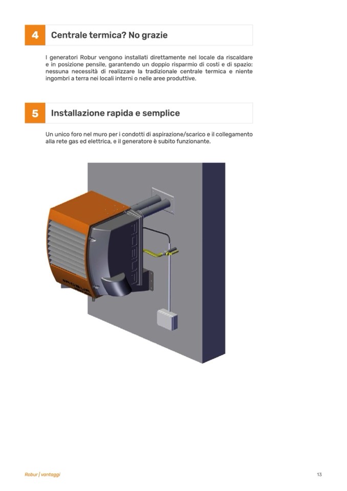 I generatori Robur vengono installati direttamente nel locale da riscaldare