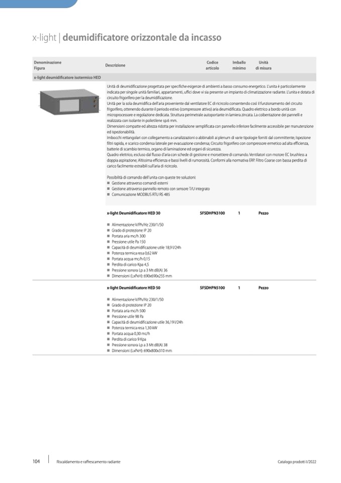 x-light deumidificatore isotermico HED