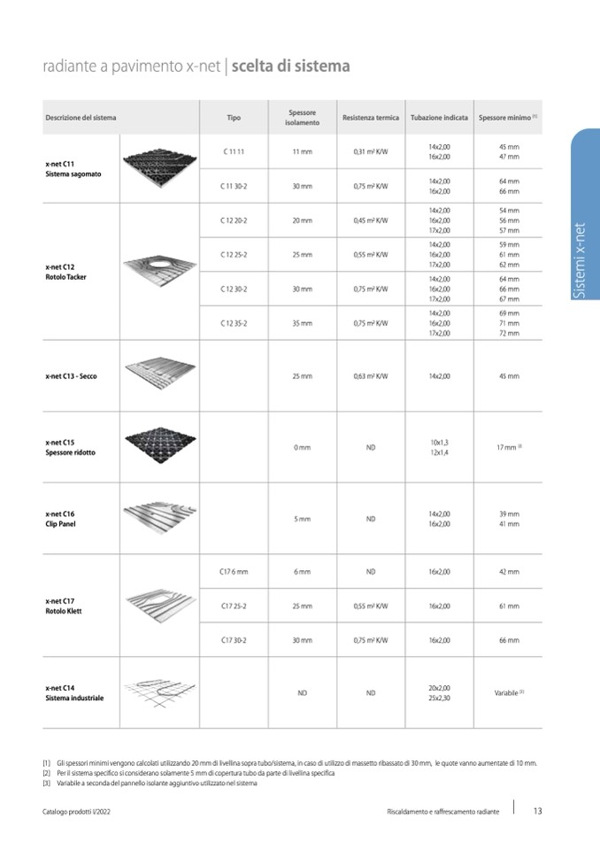[1] Gli spessori minimi vengono calcolati utilizzando 20 mm di livellina sopra tubo/sistema, in caso di utilizzo di massetto ribassato di 30 mm, le quote vanno aumentate di 10 mm.