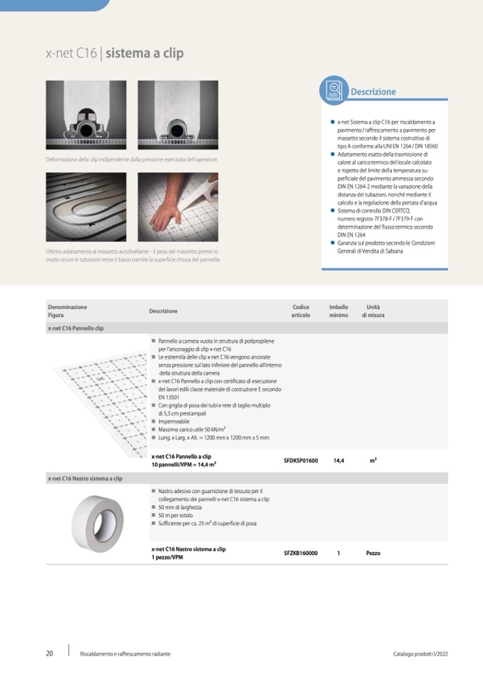 tipo A conforme alla UNI EN 1264 / DIN 18560