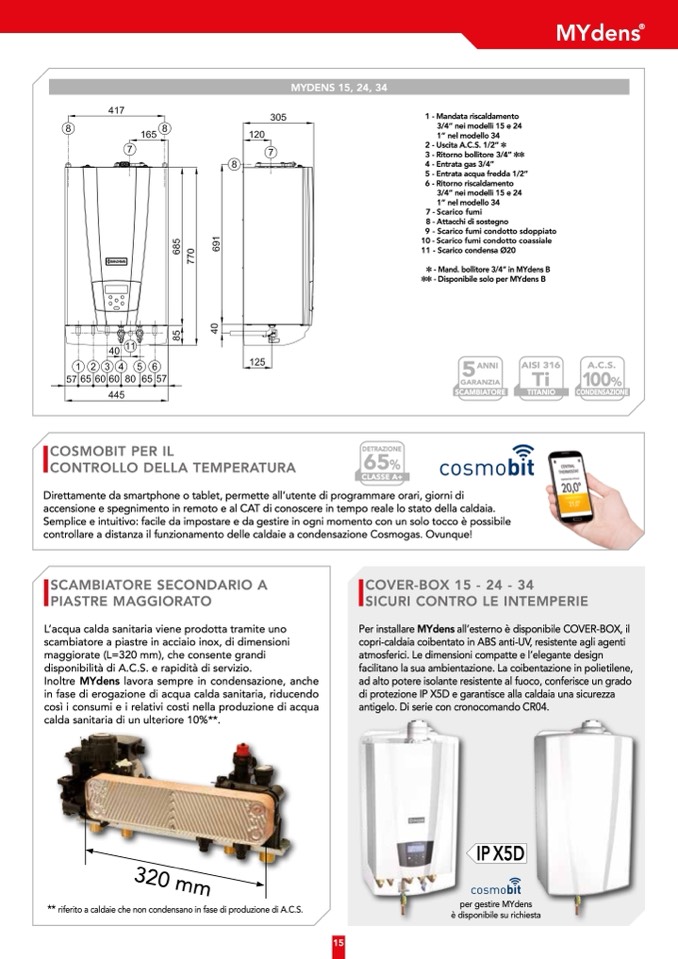 di protezione IP X5D e garantisce alla caldaia una sicurezza