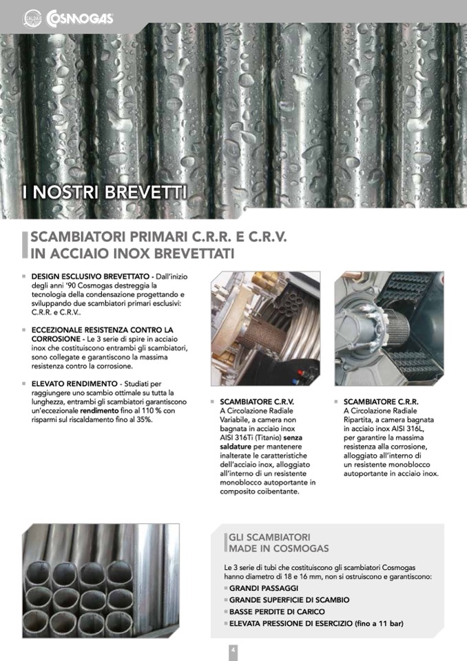 Le 3 serie di tubi che costituiscono gli scambiatori Cosmogas