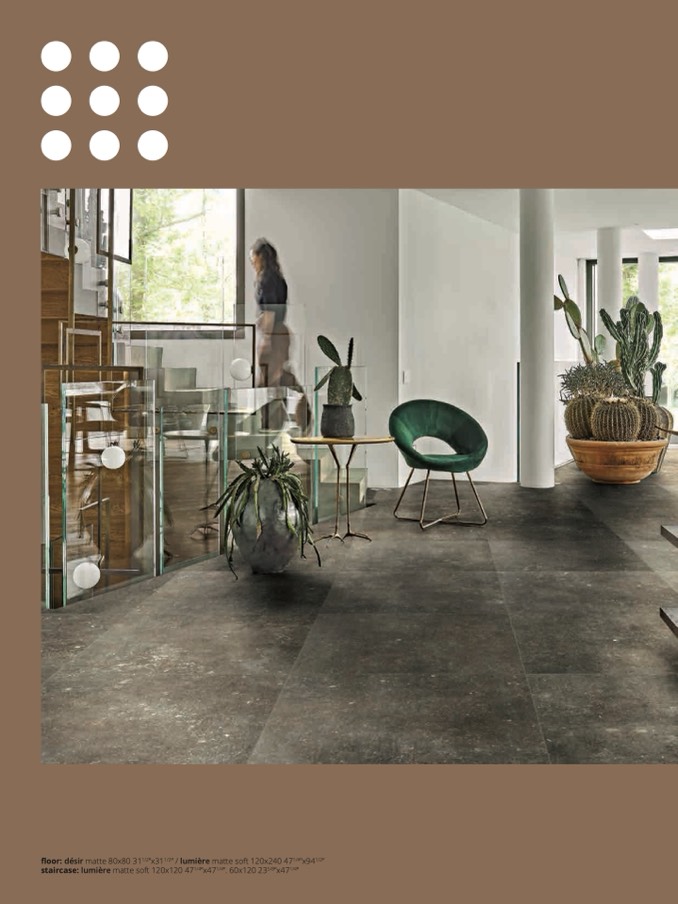 floor: désir matte 80x80 311/2”x311/2” / lumière matte soft 120x240 471/4”x941/2”