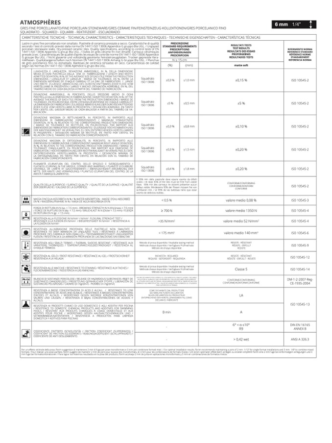 CARATTERISTICHE TECNICHE - TECHNICAL CHARACTERISTICS - CARACTERISTIQUES TECHNIQUES - TECHNISCHE EIGENSCHAFTEN - CARACTERÍSTICAS TÉCNICAS