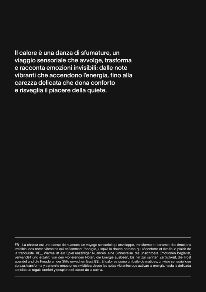 la tranquillité. DE_ Wärme ist ein Spiel unzähliger Nuancen, eine Sinnesreise, die unsichtbare Emotionen begleitet,
