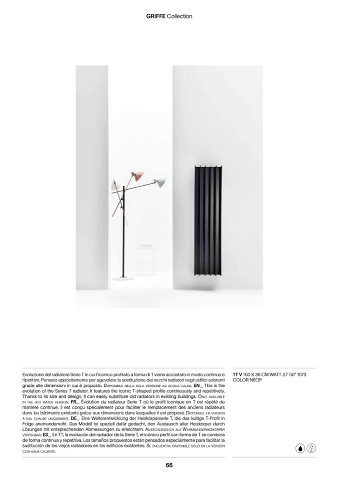 evolution of the Series T radiator. It features the iconic T-shaped profile continuously and repetitively.