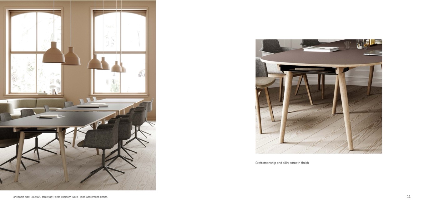 Link table size: 200x120 table top: Forbo linoleum ’Nero’. Tono Conference chairs.
