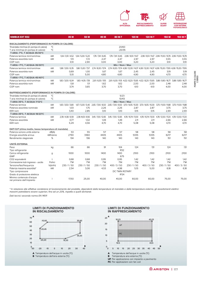 T ARIA 35°C, T ACQUA 7/12°C