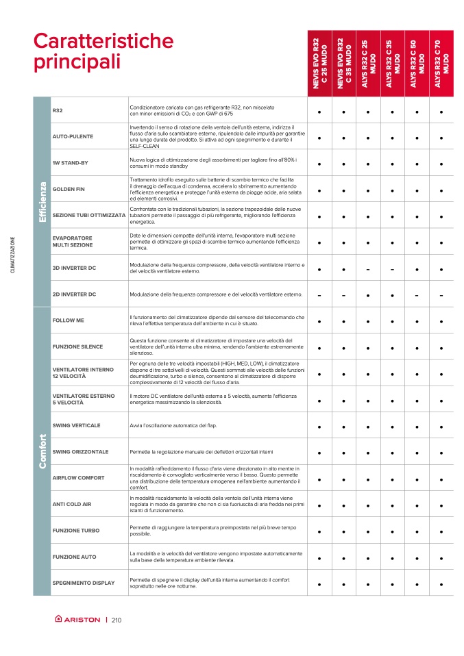 ficazione, turbo e silence, consentono al climatizzatore di disporre